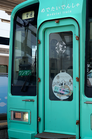 2024年7月13日に運行を開始しためでたいでんしゃ「かなた」が1周年を迎え、ヘッドマークが1周年を記念するデザインに交換されて運行している。 7月13日(日)には、「かなた」を貸切ったイベント「#かなたび ~なーなー1周年ってほんとかしら?!さぁちからをあわせて謎をかいめい!~」と加太駅での1周年記念パーティーが開催された。 |