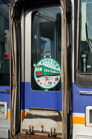| 3月13日(金・祝)をもって定期運行を終了する天空にありがとうヘッドマークが掲出されている。 天空と連結する自由席車両の難波側先頭車にのみ掲出。 掲出期間は3月13日(金)から3月20日(金・祝)まで。 また、定期運行最終日となる3月20日(金・祝)には、極楽橋駅にて『ありがとう「天空」定期運行終了式典~ようこそ「GRAN 天空」~』が開催されることになっている。 |